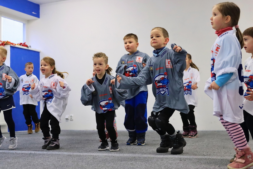 Oblíbená a tradiční akce pro děti ve věku od 4 do 8 let probíhá 2x ročně pod záštitou Českého hokeje (Český svaz ledního hokeje z. s.) v rámci celorepublikového projektu „Týden hokeje“. Dnes za námi v doprovodu rodičů do Pěšinek dorazilo celkem 36 kluků a děvčat! Po nezbytné online registraci se děti oblékly do hokejového dresu. Kluky a holky jsme museli rozdělit na dvě skupinky, aby se vešli do našich rozcičoven. Tam na zahřátí a protažení absolvola první skupina Tabata rozcvičku, druhá slalomovou dráhů. Rodiče mezitím shlédli ve velké zasedací místnosti krátkou prezentaci o projektu Týden hokeje a o podpoře hokejové mládeže jak ze strany hokejového svazu, tak ze strany našeho klubu.